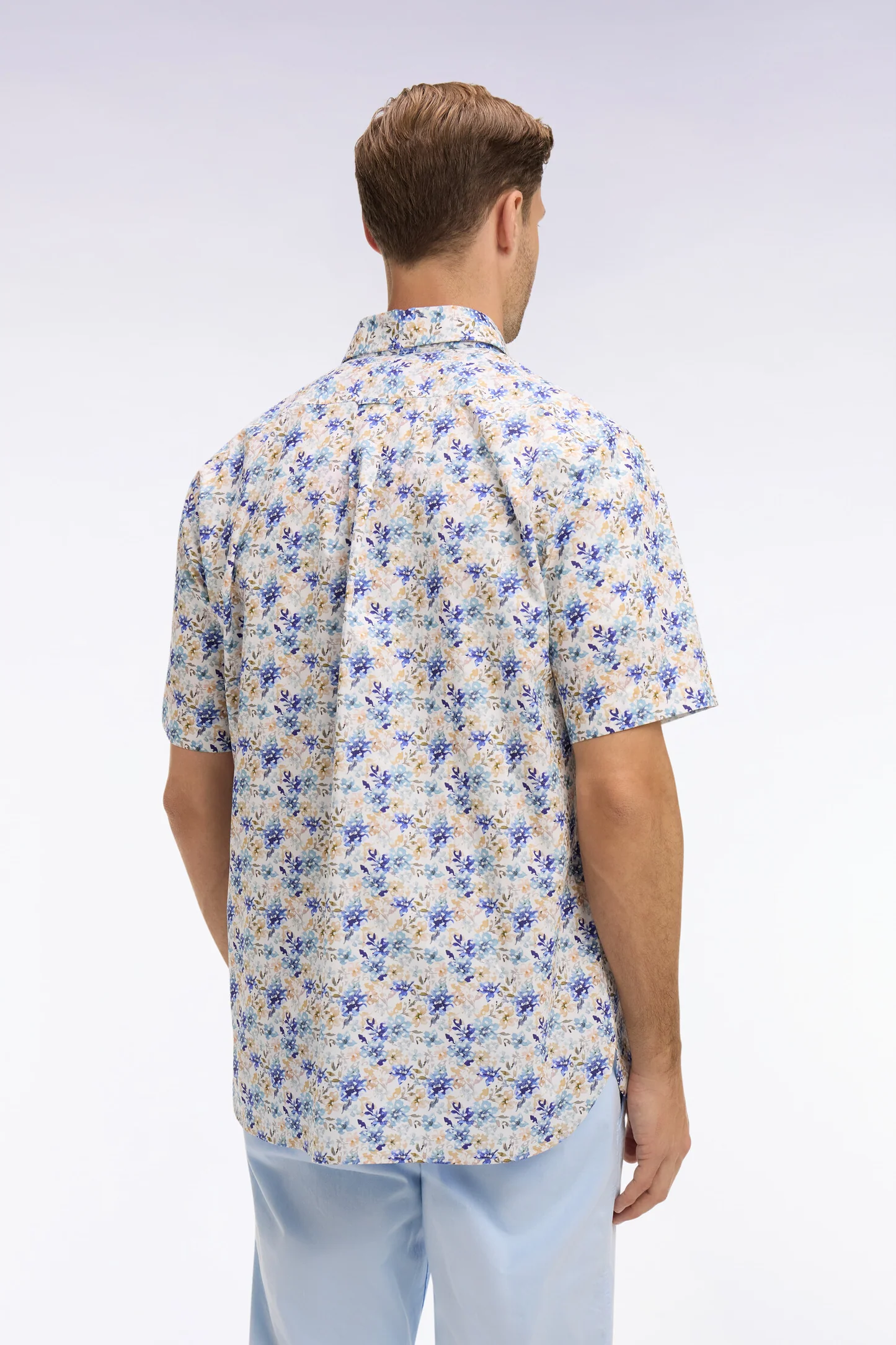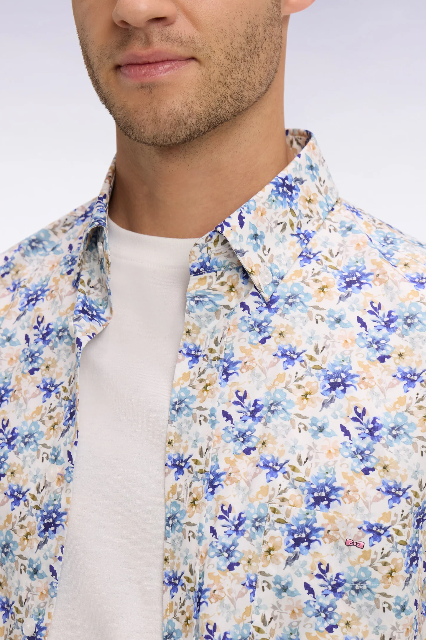 Chemise à manches courtes EDEN PARK en popeline et chambray à motif floral bleu 06ER
