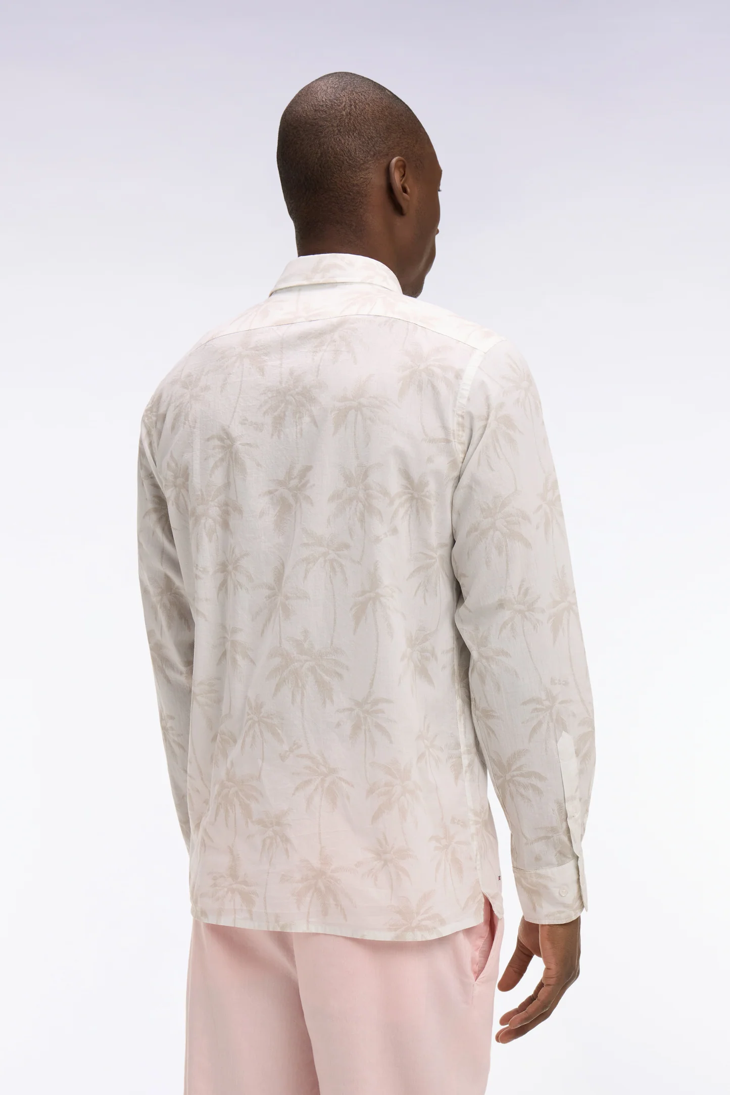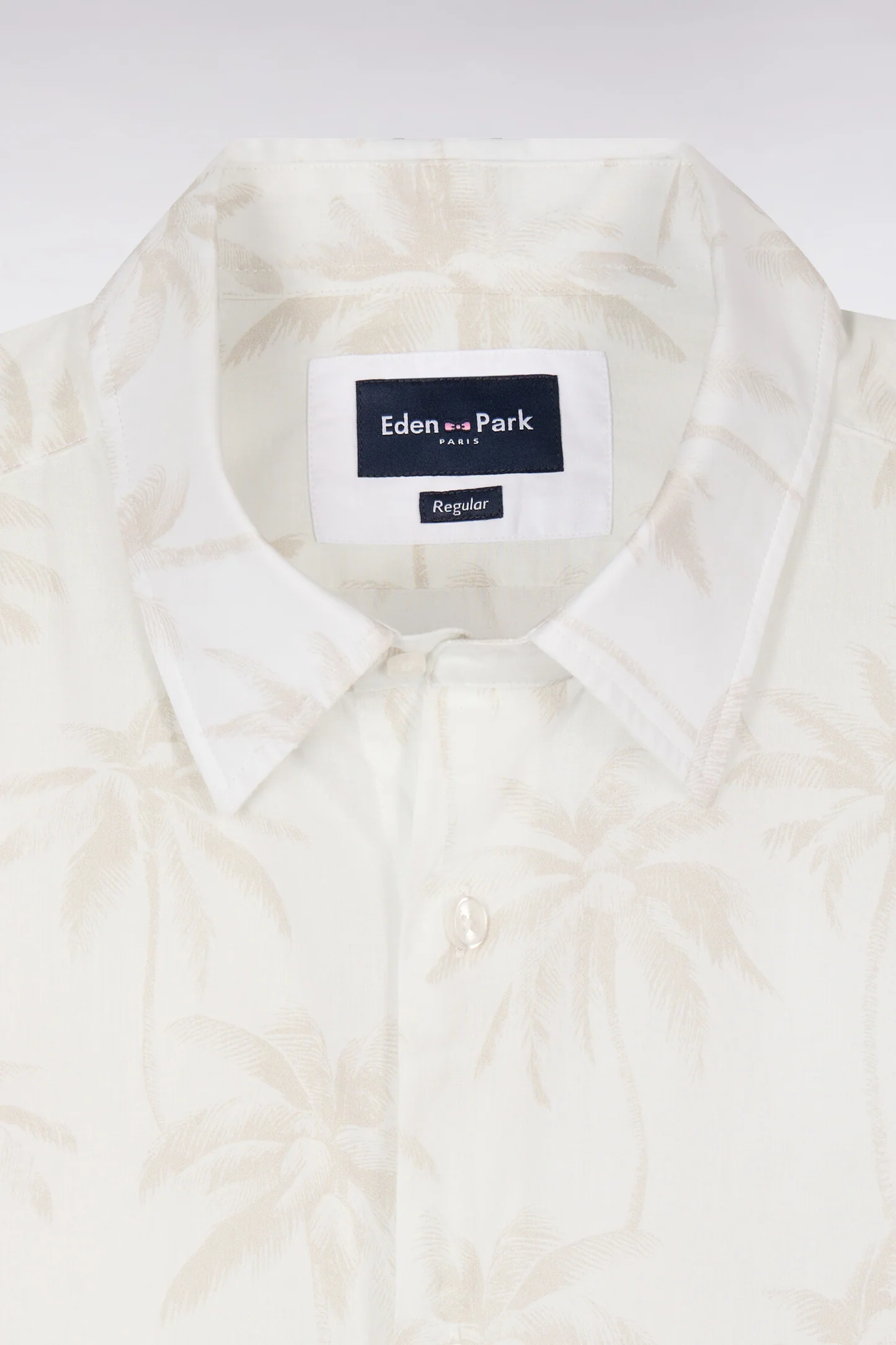 Chemise EDEN PARK en coton blanche imprimé palmier beige coupe regular 06F7