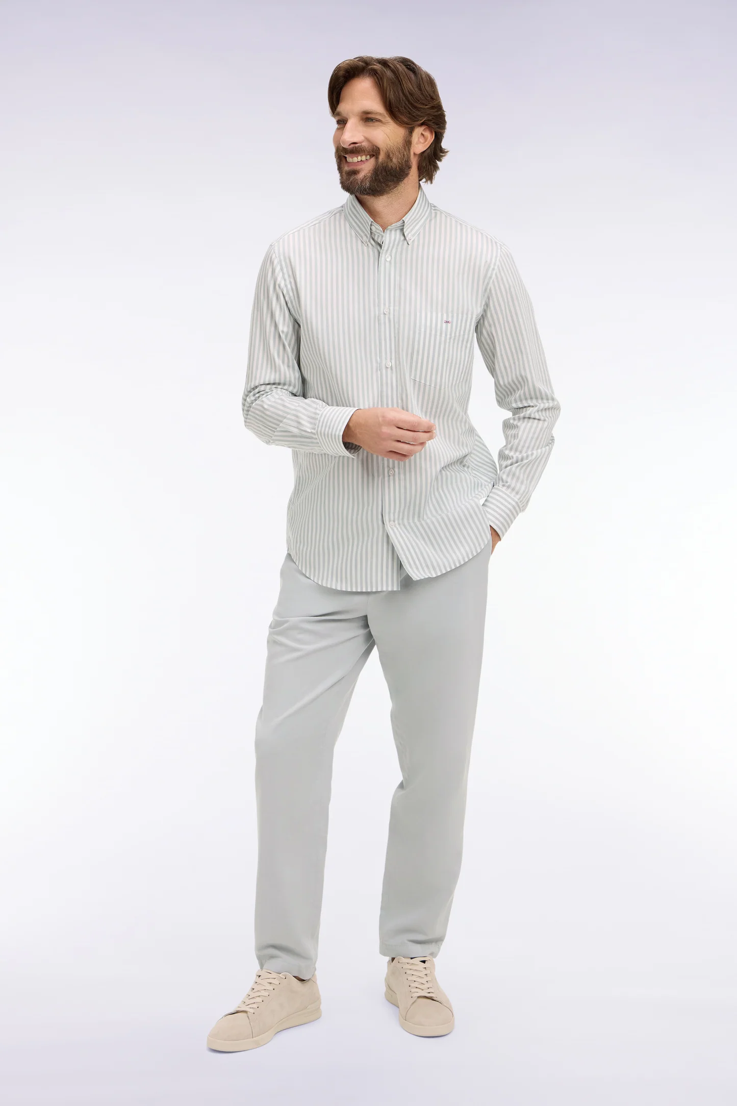 Cette chemise homme en popeline de coton à rayures bâton revisite un grand classique du vestiaire estival avec élégance. Légère et agréable au porté, elle assure une silhouette nette grâce à sa coupe droite et son col à pointes boutonnées. Les rayures verticales allongent la ligne, donnant un style soigné sans effort. La poche poitrine ornée du nœud papillon Eden Park rappelle élégamment l’identité de la Maison, tandis que le pli dos apporte aisance et confort. Parfaite avec un jean clair ou un chino, cette chemise est un indispensable chic et facile à associer. Cet intemporel vous ai proposé dans une grande palette de coloris, des plus classiques aux plus tendance.