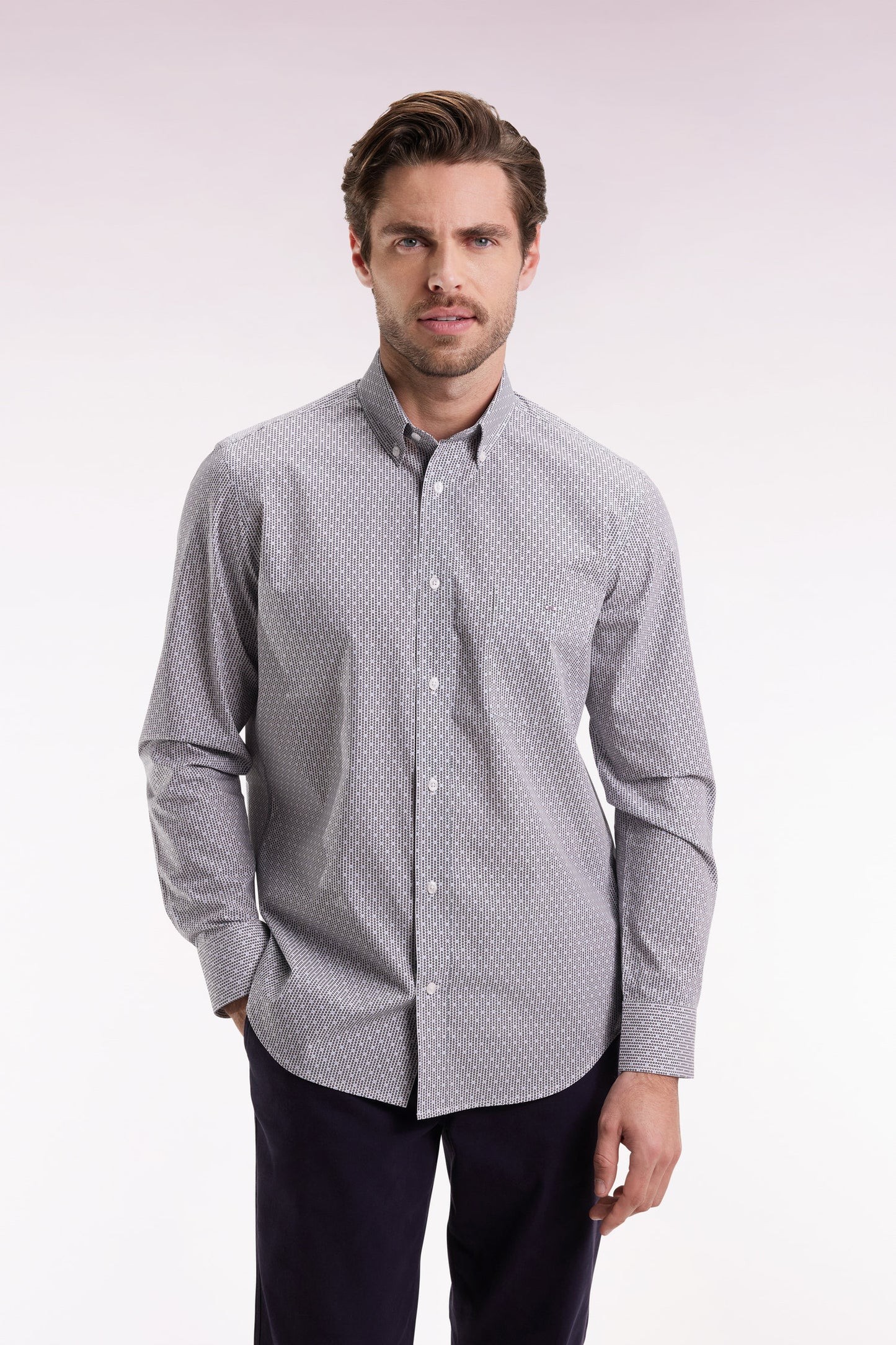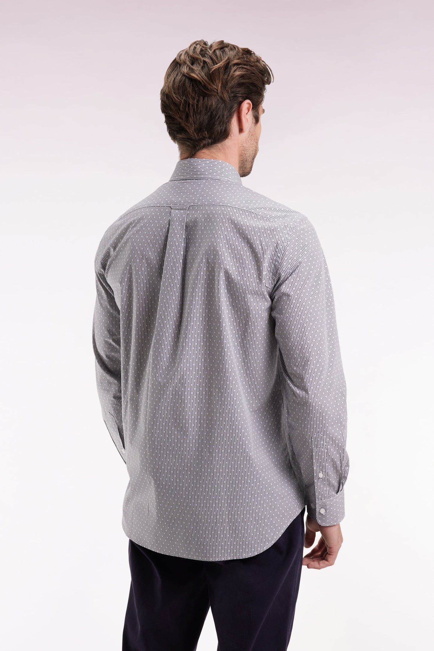 - Conçue dans son imprimé exclusif à notre maison, cette chemise homme au motif dessiné dans nos ateliers conjugue originalité et élégance. Le regard attentif y décèlera l’emblème Eden Park : le nœud papillon, répété en all-over et associé à des cercles pour un effet graphique et original. Un modèle collector pour amateurs d’élégance French Flair. Cette chemise en popeline de coton proposée dans trois coloris comporte toutes les finitions soignées emblématiques du savoir-faire de notre maison française dont son col à pointes boutonnées et ses boutons ovales siglés