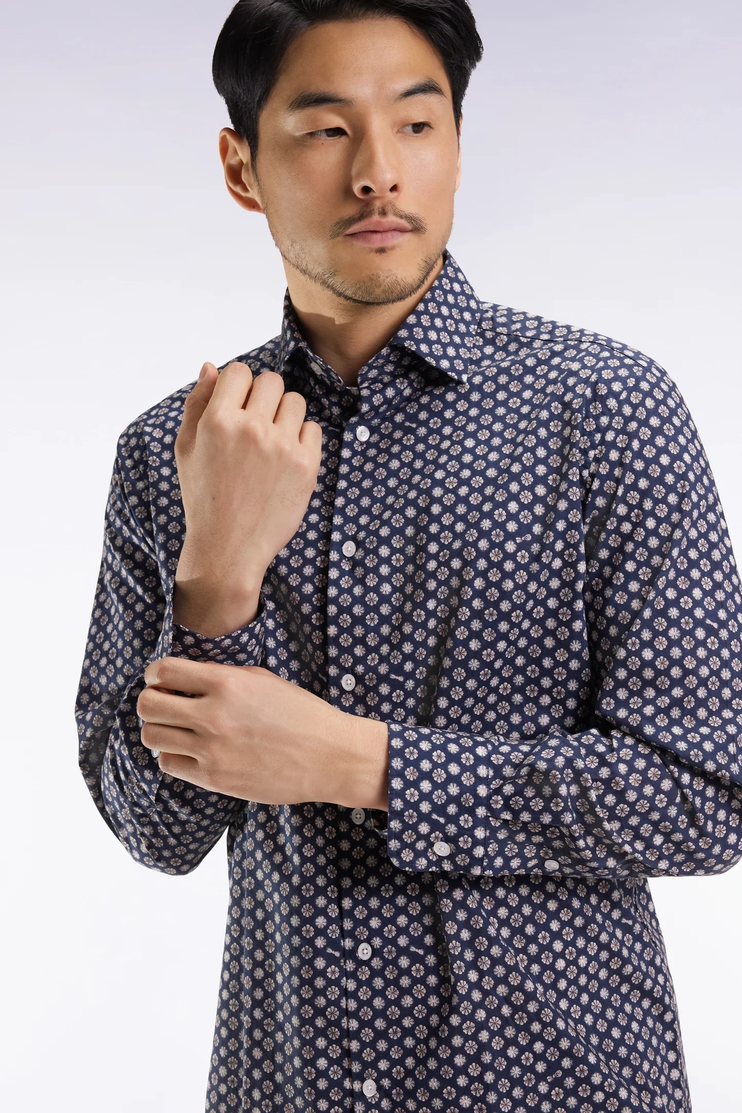 Chemise en coton marine EDEN PARK à imprimé floral graphique coupe droite 068B