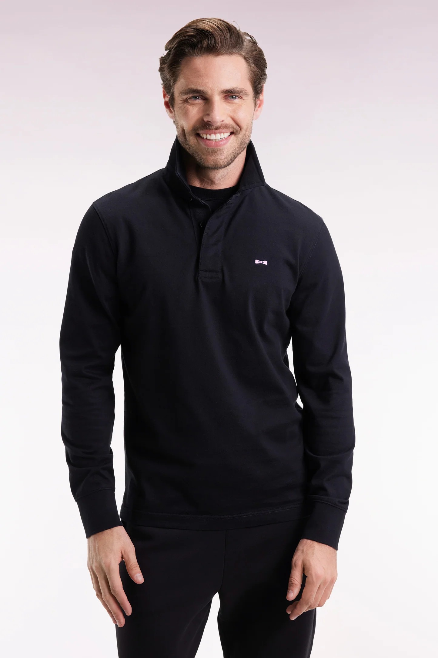 Ce maillot de rugby urbain à manches longues revisite les codes Eden Park avec sa broderie dos N°10 enrichie d’un tissu cravate à micro-motifs nœud papillon, une signature iconique de notre vestiaire. Le col en twill, les poignets en bord-côtes et la bande de propreté réalisée dans un tissu cravate uni apportent une finition sportive et raffinée à ce maillot façonné dans un jersey de coton épais pour la saison froide