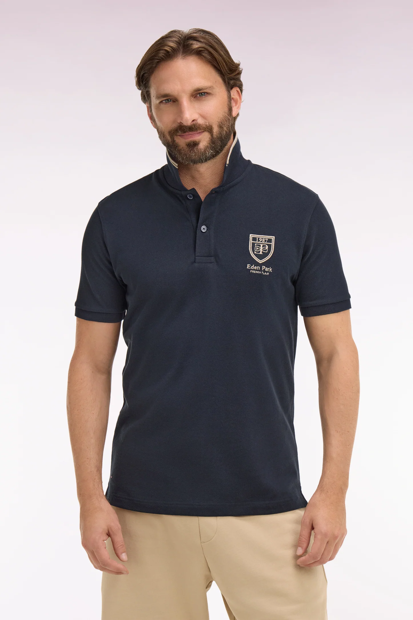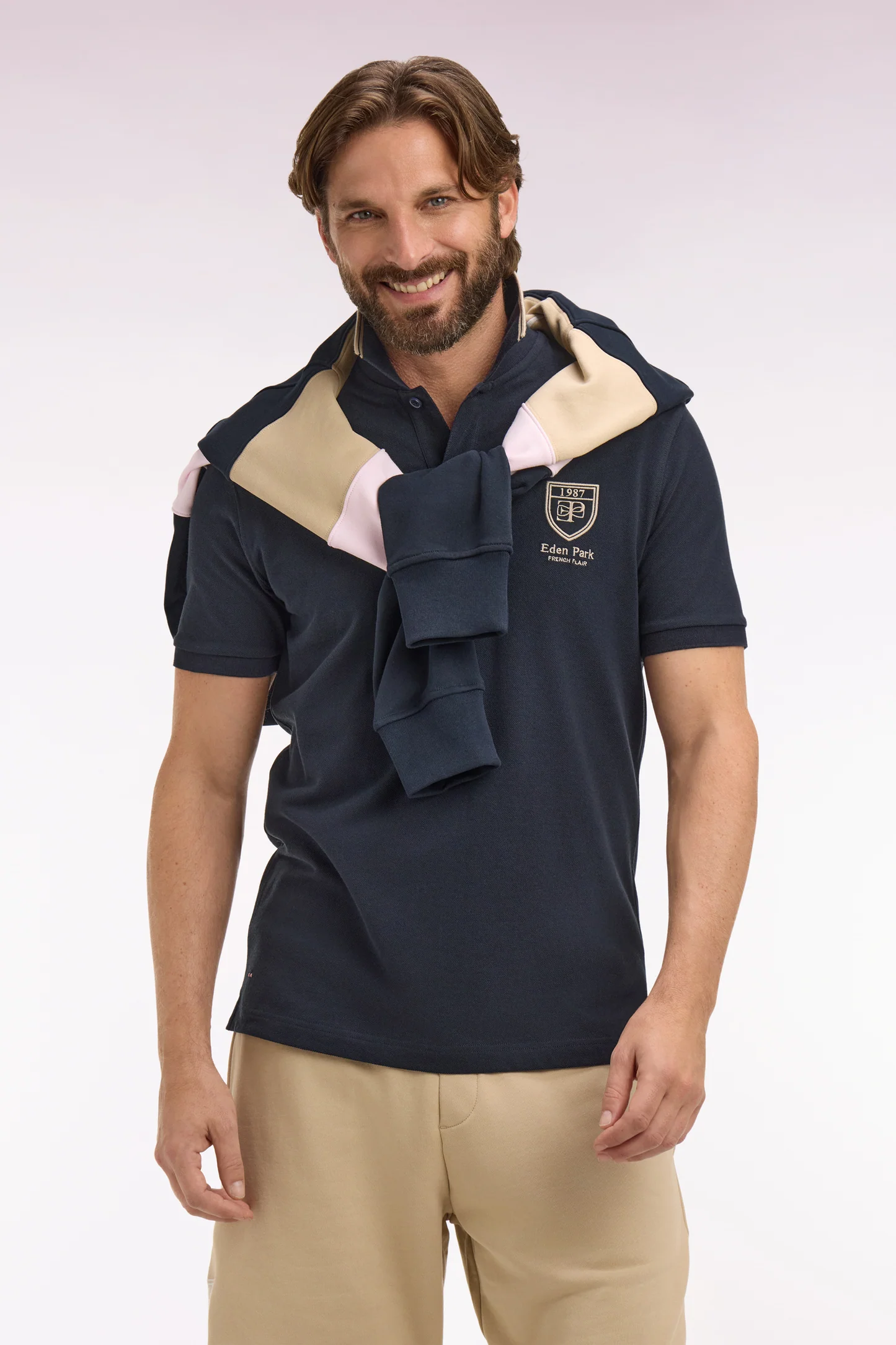 Polo à manches courtes EDEN PARK en piqué coton marine écusson EP 06FV