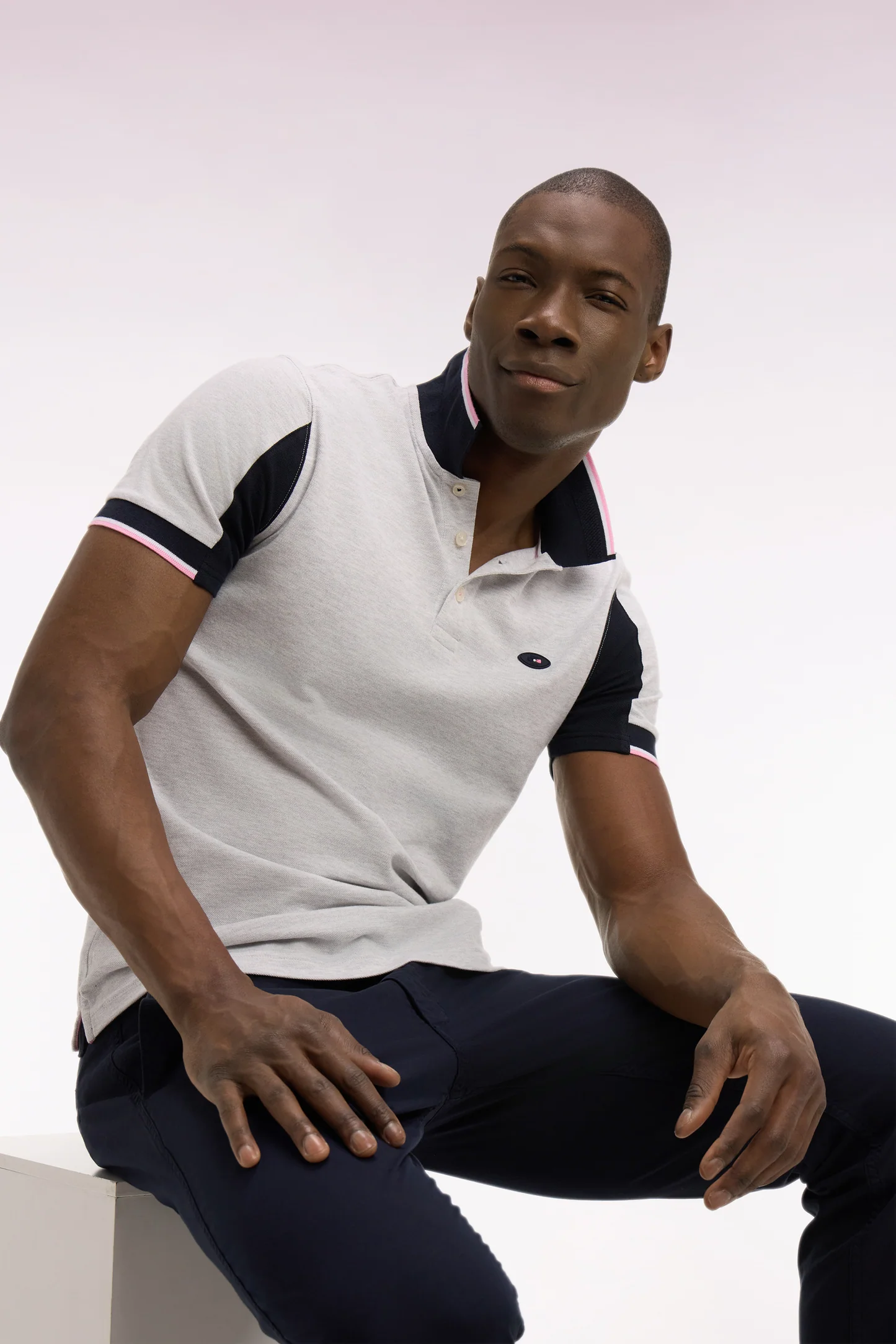 - Col polo marine à bordures contrastées