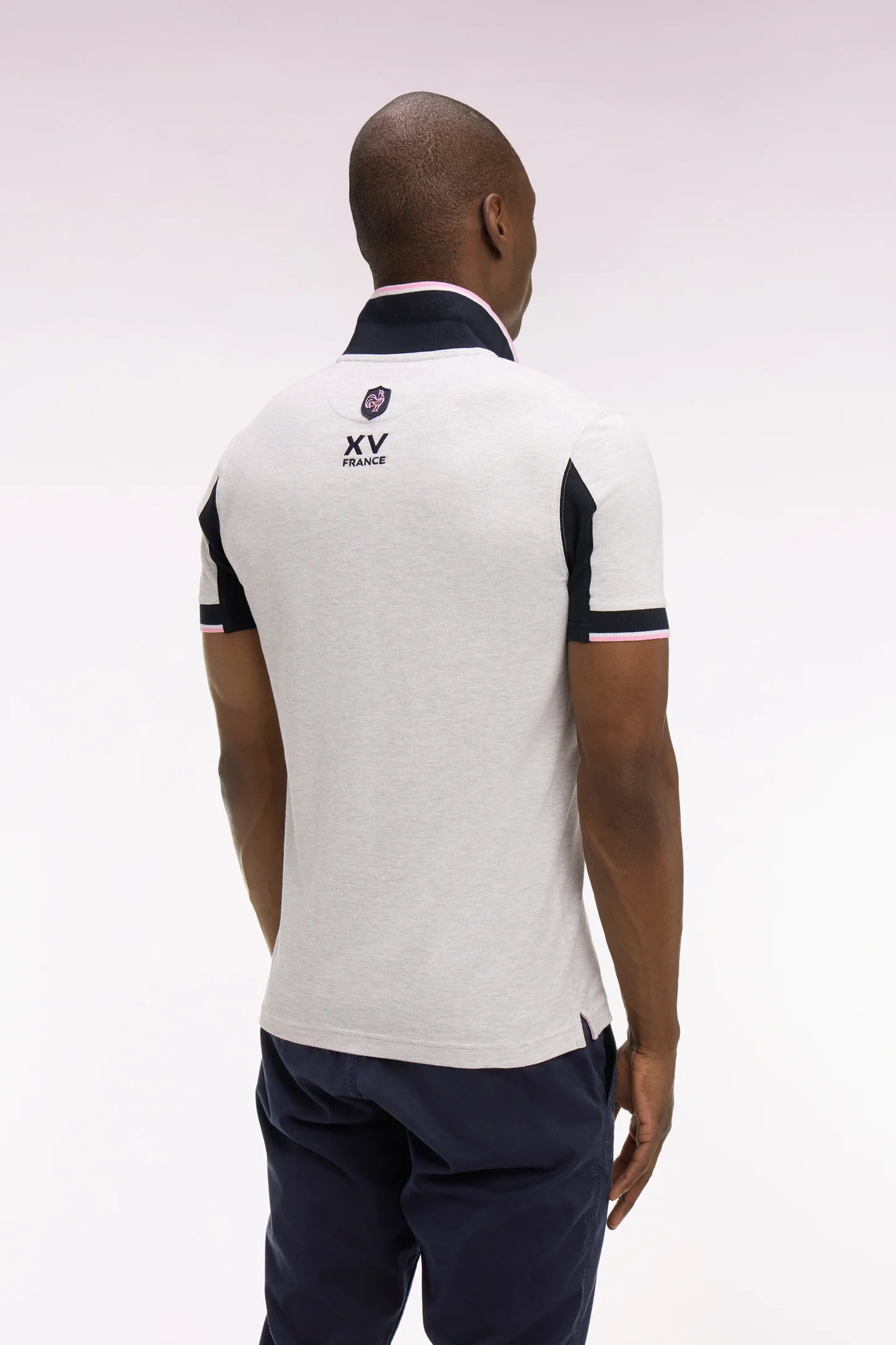 Polo à manches courtes XV de France en piqué coton gris clair à découpes de manches 06FX