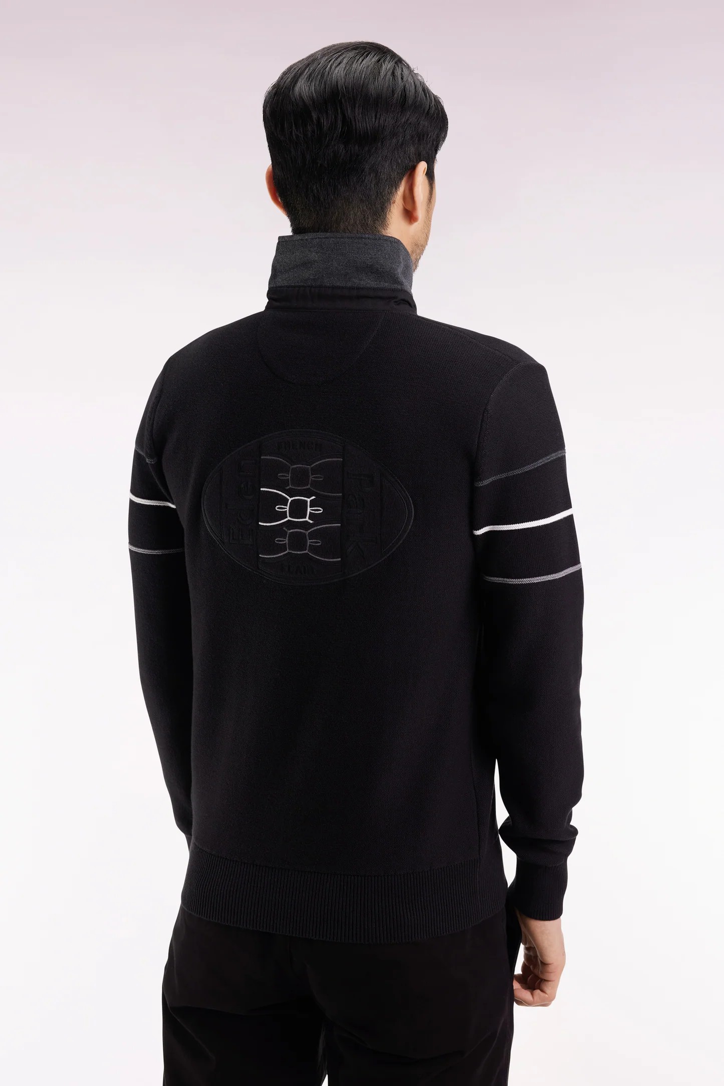 Pull col maillot EDEN PARK en coton noir dos brodé 069B