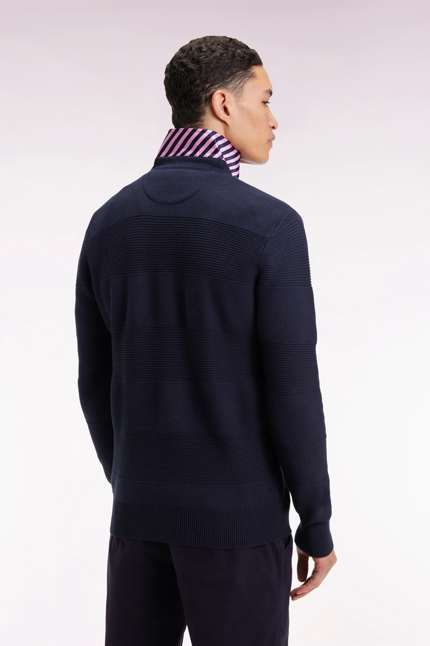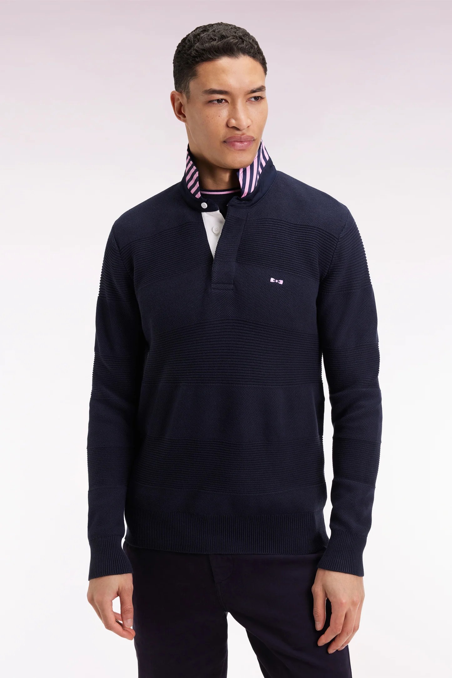 Pull col maillot ESEN PARK en coton marine à effet de rayure 069C
